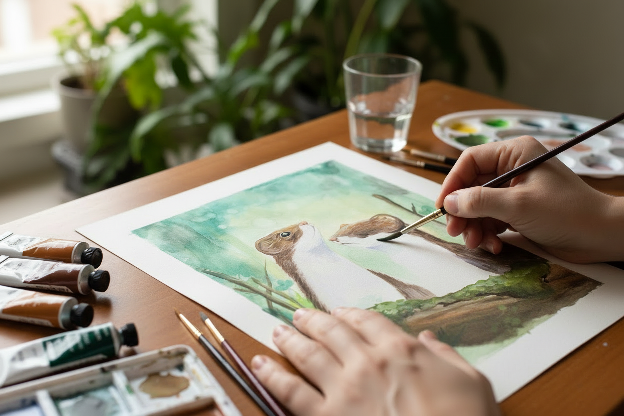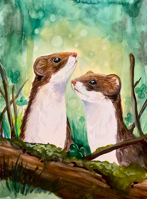 Curious Stoats-Watercolour Art Print